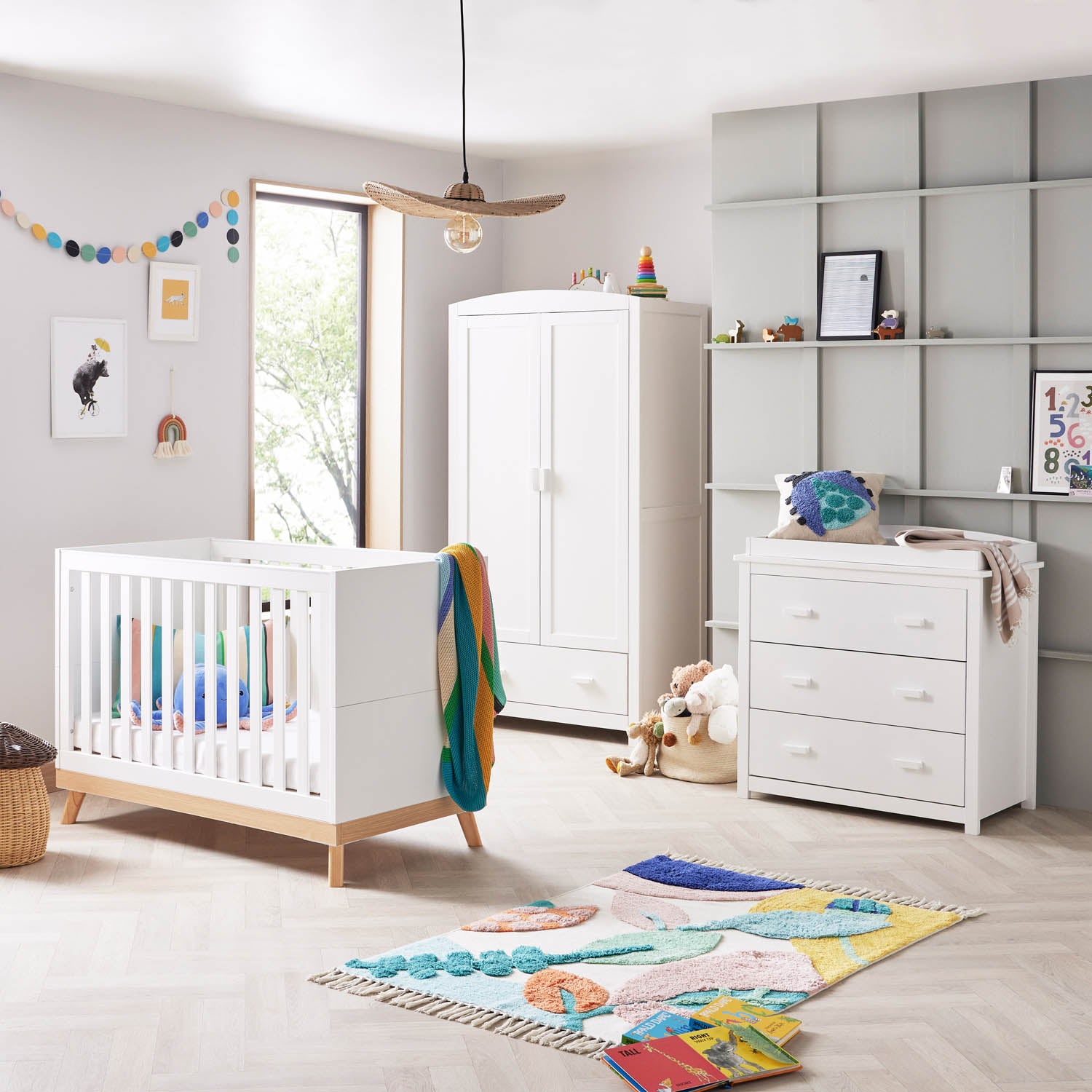For those parents looking for the perfect solution where space is at a premium, the Mona Mini collection elegantly combines contemporary Scandi style with a timeless woodgrain finish. The Mona Mini 3-piece room set features the Mona Mini cot bed, Mona changing unit and Mona wardrobe, and is designed to provide parents with a durable, functional, and stylish furniture option for their little ones.