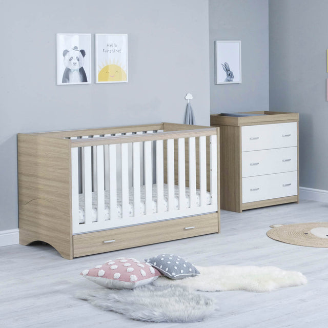 Babymore Veni 2 Piece Room Set with Drawer - Oak White