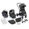 Luxury 3 in 1 travel system bundle includes: Chassis, Seat, Elevator, Carrycot, Universal Car Seat Adaptors, Foot Muff, Seat Liner, Rain Cover, Changing Bag, Changing Matt, Cup Holder, Coco i-Size Car Seat.