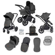 Ickle Bubba Stomp Luxe 9 Piece Pram Bundle - Black/Charcoal Grey/Black