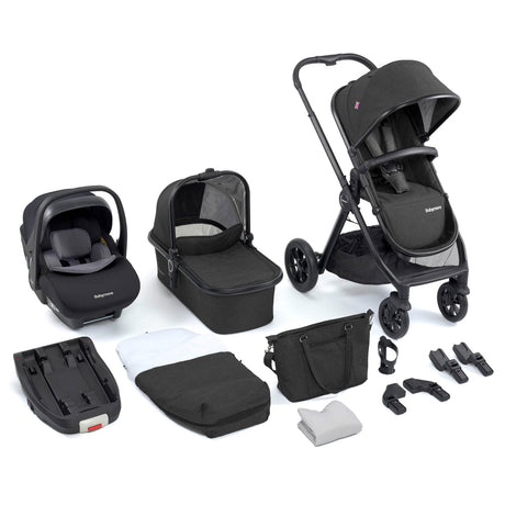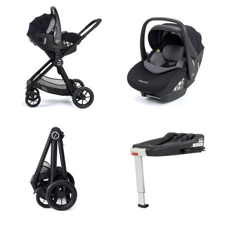 Babymore Memore V2 Travel System + Pecan Car Seat & Base - Black