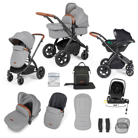 Ickle Bubba Virgo Twin 18 Piece Travel System with Cirrus i-Size Car Seat & Base - Black