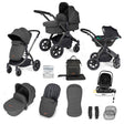 Ickle Bubba Stomp Luxe 12 Piece Travel System with i-Size Nimbus Car Seat & Spin Base - Black/Charcoal Grey/Black