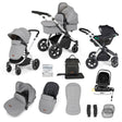 Ickle Bubba Stomp Luxe 12 Piece Travel System with i-Size Nimbus Car Seat & Spin Base - Silver/Pearl Grey/Black