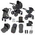 Ickle Bubba Stomp Luxe 12 Piece Travel System with i-Size Stratus Car Seat & Base - Black/Charcoal Grey/Black