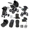 Ickle Bubba Stomp Luxe 12 Piece Travel System with i-Size Stratus Car Seat & Base - Silver/Midnight/Black