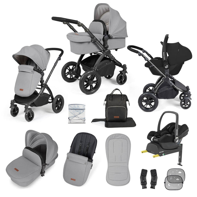 Ickle Bubba Stomp Luxe 12 Piece Travel System with Maxi-Cosi Cabriofix i-Size & Base - Black/Pearl Grey/Black