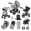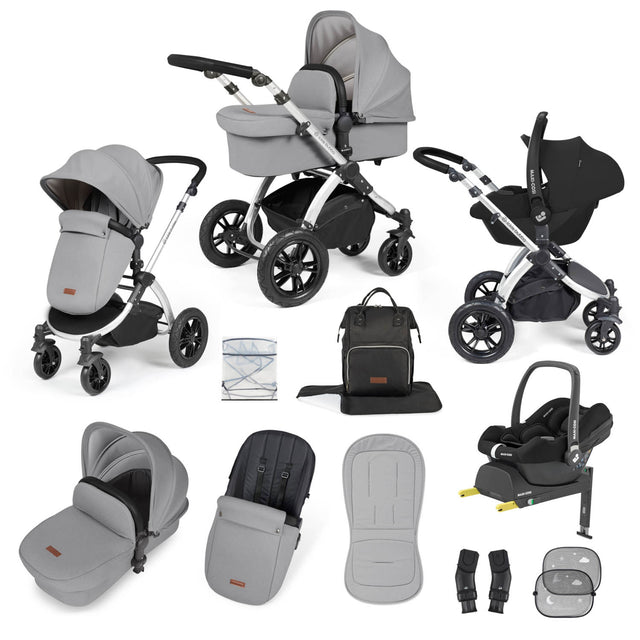 Ickle Bubba Stomp Luxe 12 Piece Travel System with Maxi-Cosi Cabriofix i-Size & Base - Silver/Pearl Grey/Black