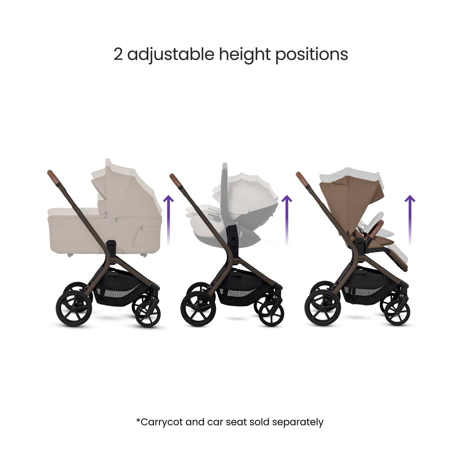 2-height elevation system brings baby closer in carrycot, stroller or car seat