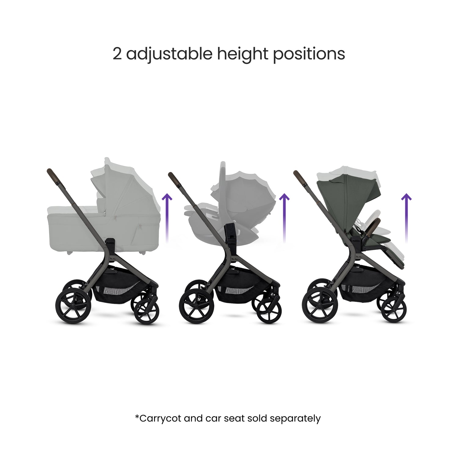 2-height elevation system brings baby closer in carrycot, stroller or car seat
