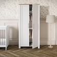 Keep your little one’s clothing organised in the Valencia wardrobe. With twin hanging rails and two shelves, there’s plenty of space to store your child’s clothing. As your baby grows, the lower rail and shelf can be easily removed to provide more space so you can continue to use throughout their childhood. Finished in a timeless white with natural ash details, the Valencia wardrobe will fit seamlessly into any nursery space.
