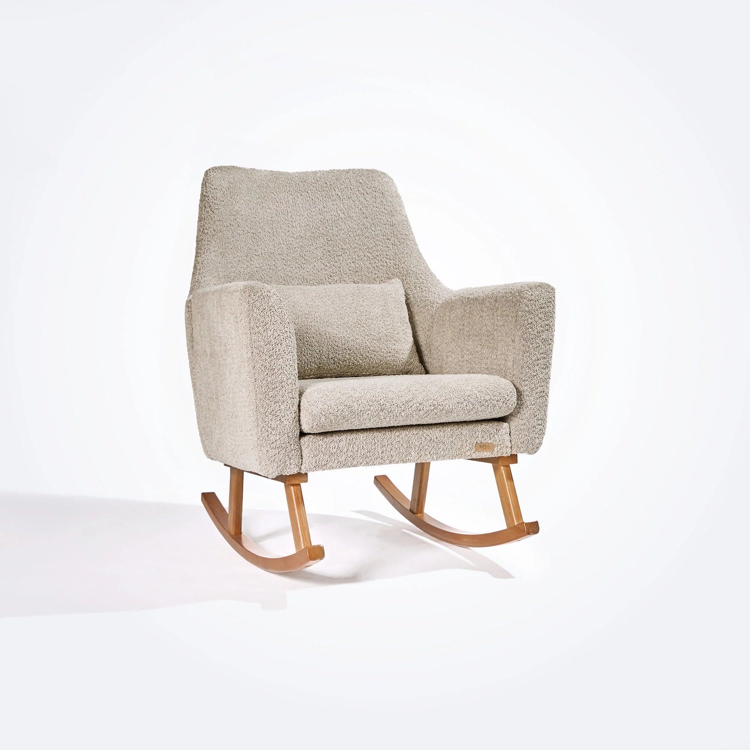 Experience comfort without compromise with the Oscar Luxe Rocking Chair in Teddy Mushroom. Upholstered in plush teddy fleece with a generously wide seat, this modern chair is perfect for cuddling, feeding, and unwinding. A supportive back cushion promotes good posture, while a hidden-storage footstool keeps nursery essentials neatly tucked away. With its smooth rocking motion and mid-century-inspired design, Oscar Luxe is as stylish as it is soothing — a beautiful addition to any room.